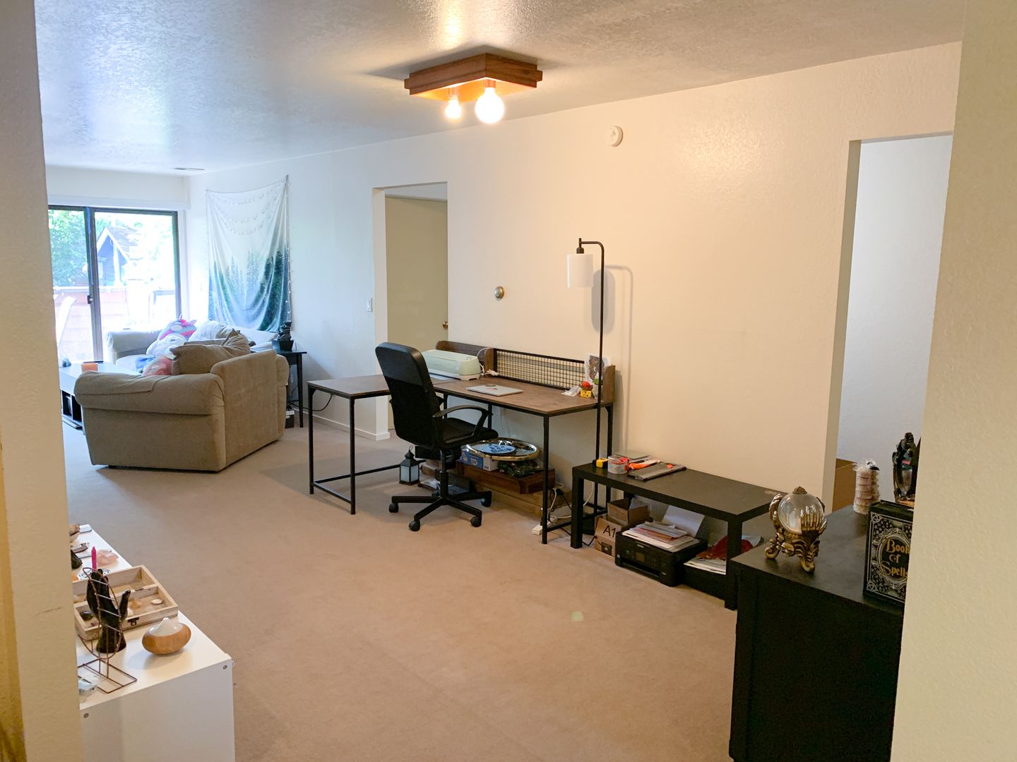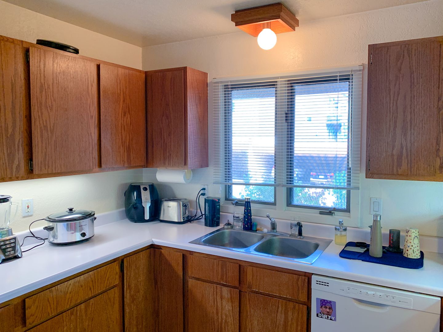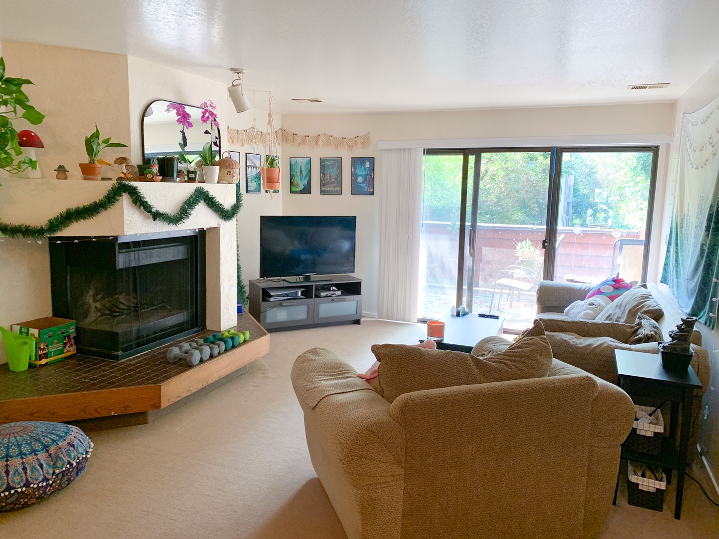 Open floor-plan with a wood-burning fireplace, a full-size washer and dryer, and a large patio!