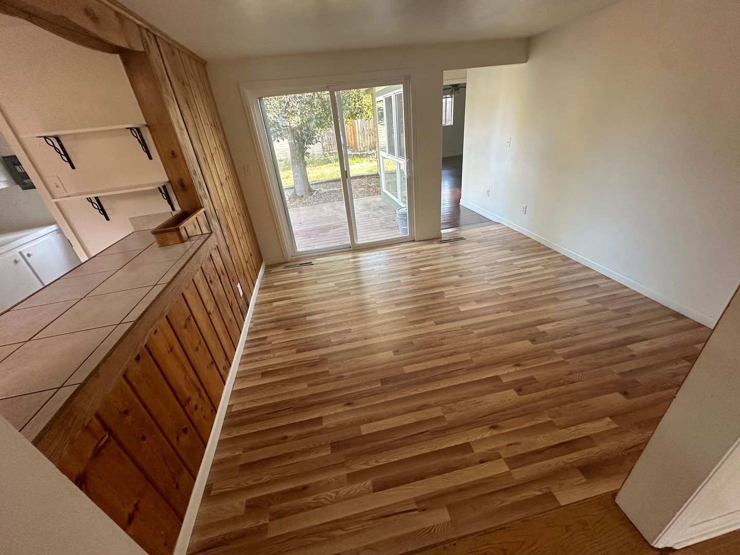 Great 4 bedroom, 2 bath home with hardwood floors, large living room, extra living space just off the kitchen, large fenced yard with a new deck and a detached garage off the back alley.