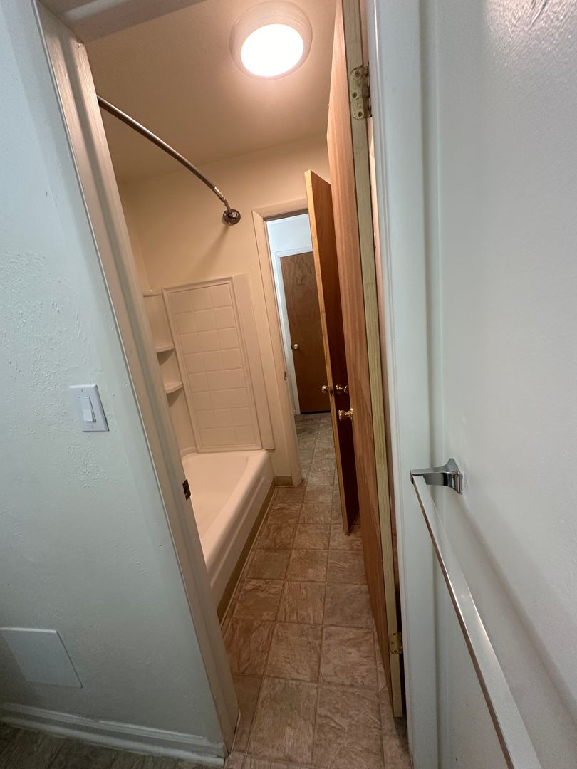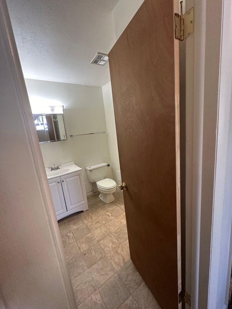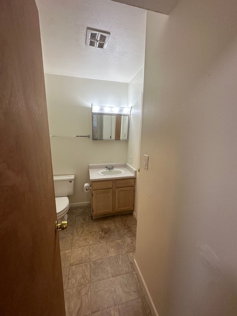 This unit has a full kitchen with eat-in area, a good sized living room and bedrooms. The bathrooms are split up to where each house mate has their vanity, toilet and closet but share the shower.